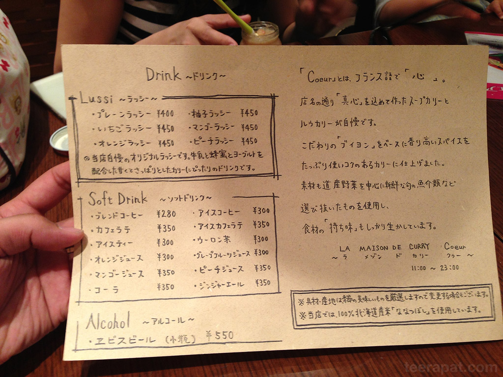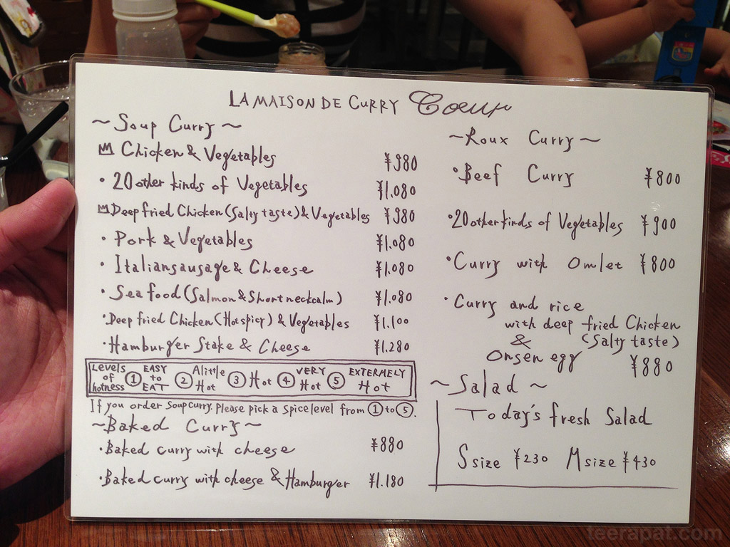 จากหลายร้านเราเลือกทานร้าน LA MAISON DE CURRY COEUR ซึ่งขายซุปแกงกระหรี่ (Soup Curry)